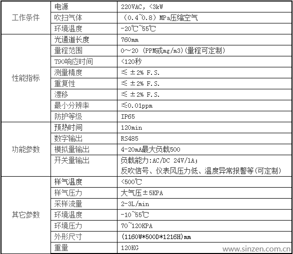 激光氣體分析儀參數(shù)
